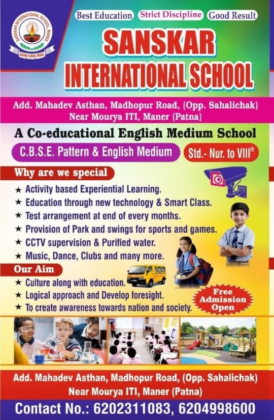 SANSKAR INTERNATIONAL SCHOOL, Mahadev Asthan, Madhopur Road, Maner, Patna-801108
